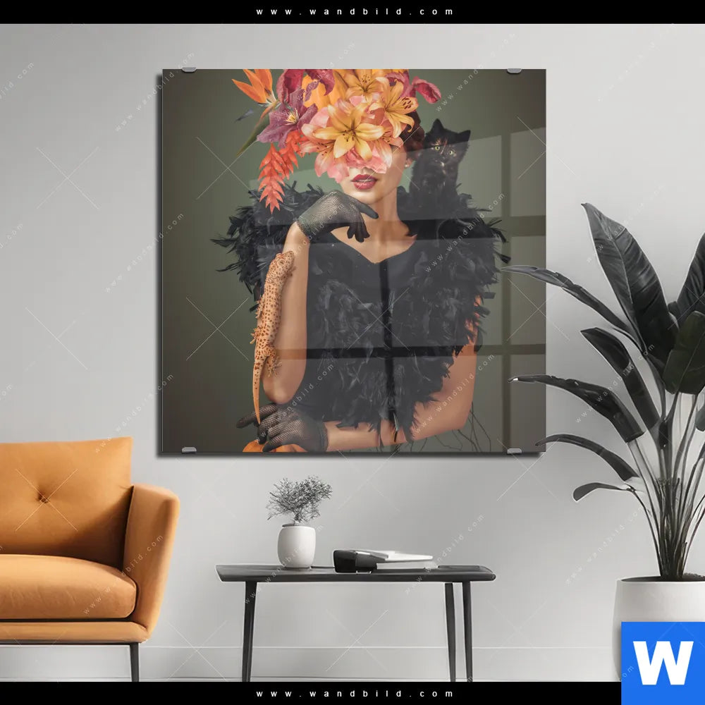 Acrylglasbild | Blumenportrait einer Frau | Quadrat
