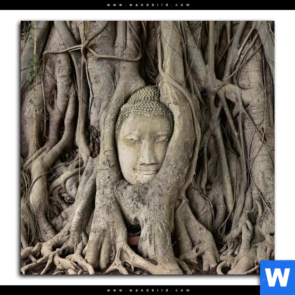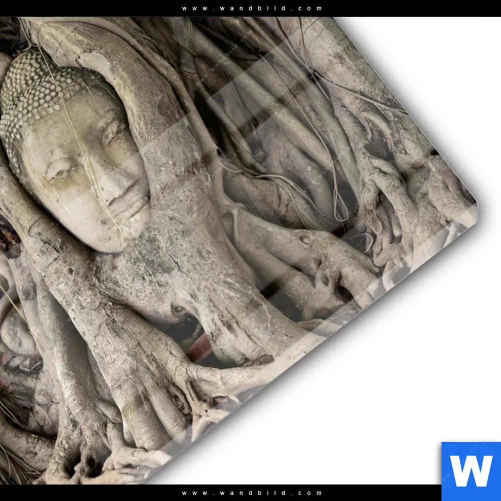 Acrylglasbild | Buddha in Baumwurzeln | Quadrat