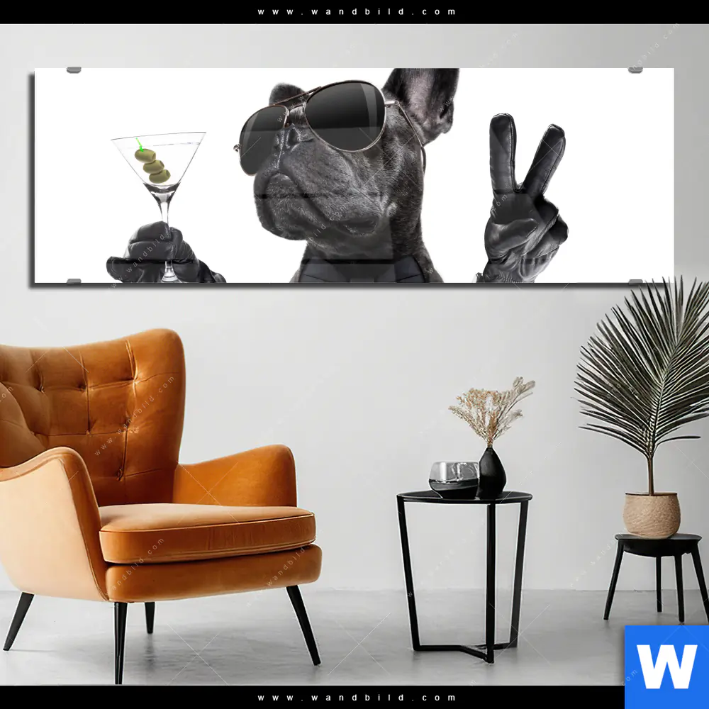 Acrylglasbild | Bulldogge mit Martini | Panorama