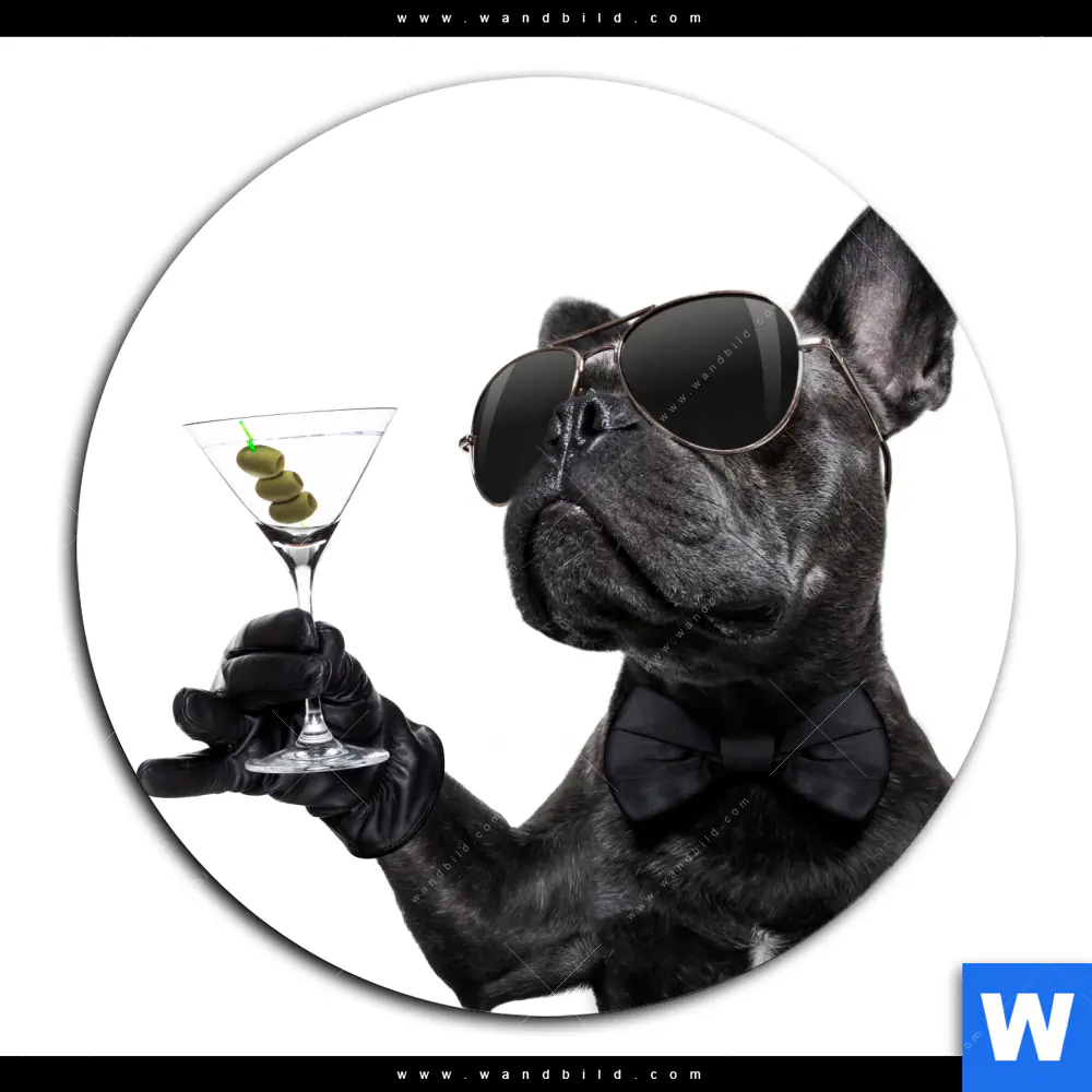 Acrylglasbild | Bulldogge mit Martini | Rund