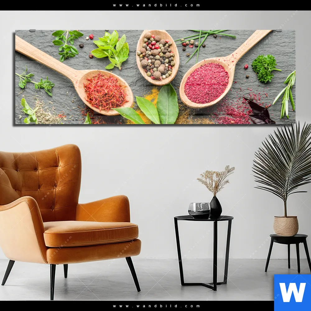 Acrylglasbild | Bunte Gewürze in Holzlöffeln | Panorama