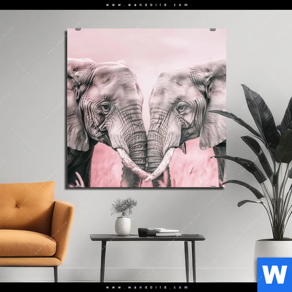 Acrylglasbild | Elefanten - Harmonie in Pastell | Quadrat