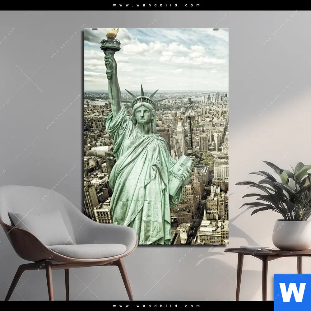Acrylglasbild | Freiheit über Manhattan | Hochformat