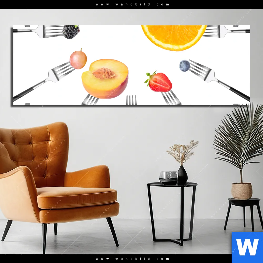 Acrylglasbild | Früchte auf Gabeln | Panorama