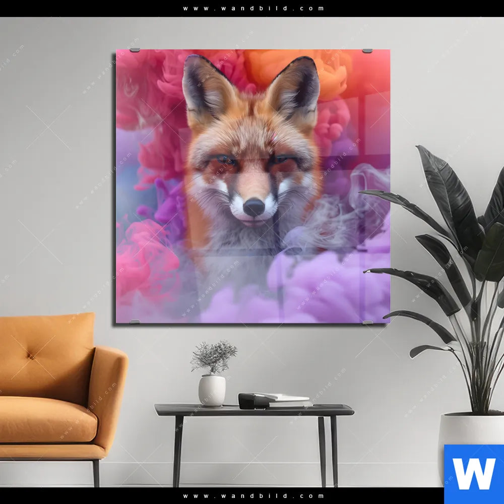 Acrylglasbild | Fuchs in Farbnebel | Quadrat