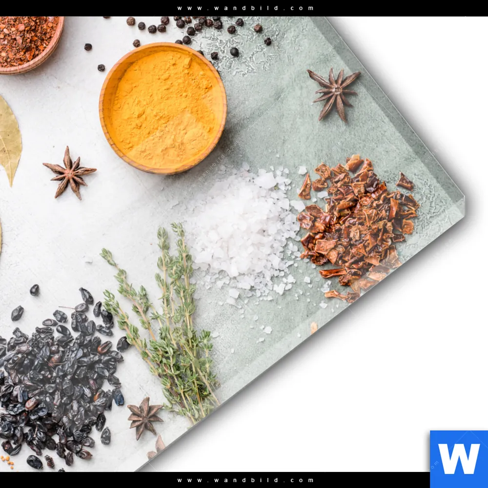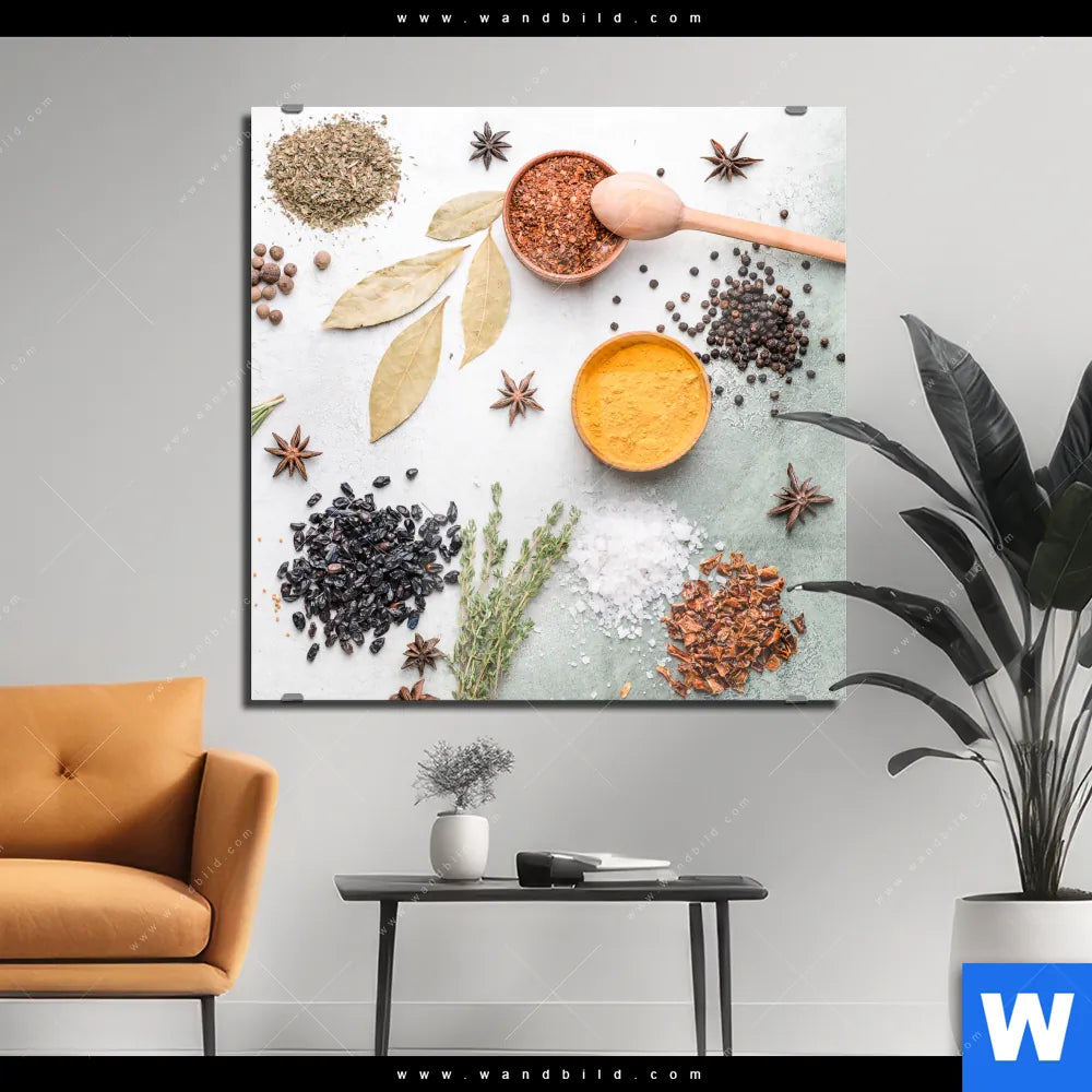 Acrylglasbild | Gewürze auf hellem Untergrund | Quadrat