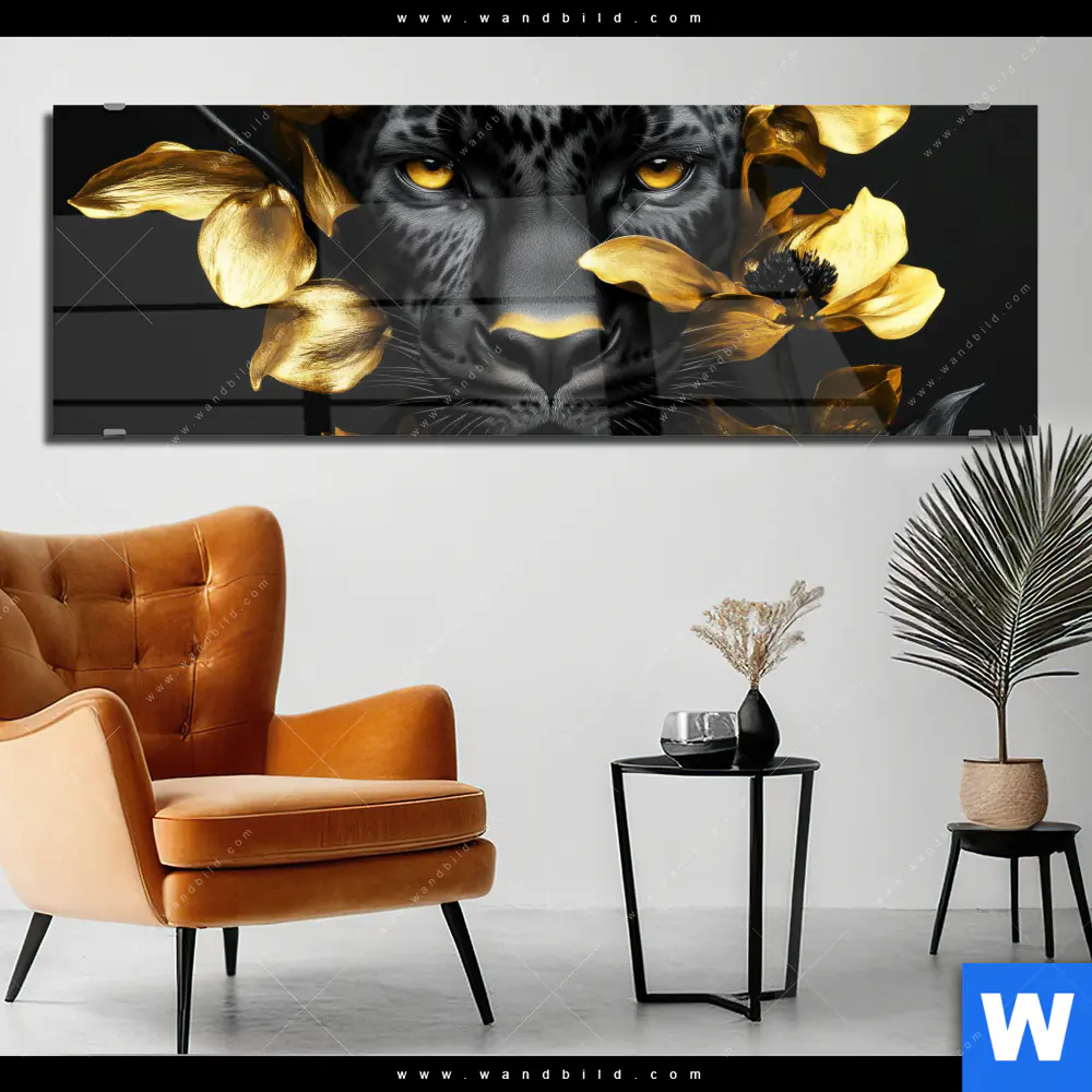 Acrylglasbild | Goldblumen & Panther | Panorama