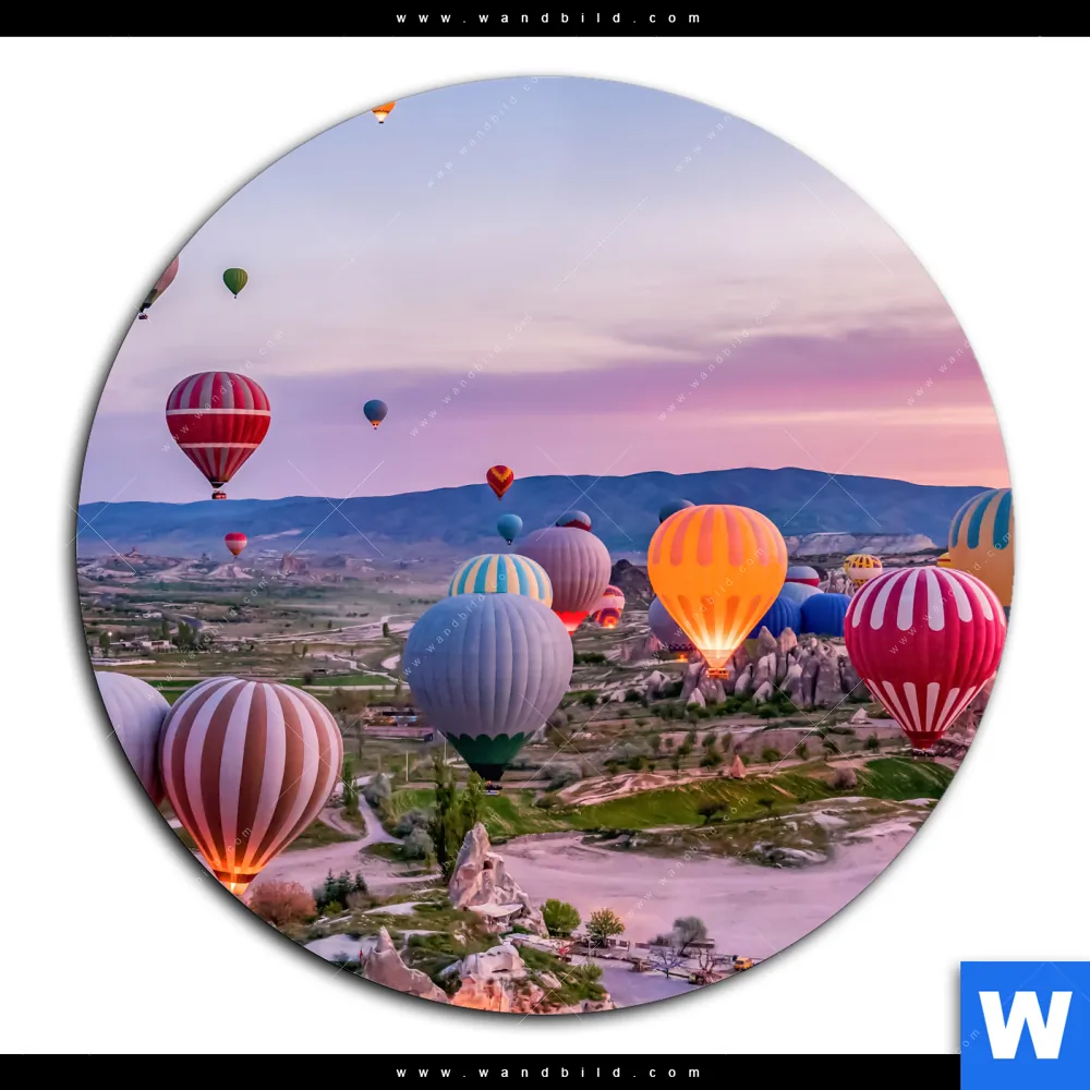 Acrylglasbild | Heißluftballons im Sonnenuntergang | Rund
