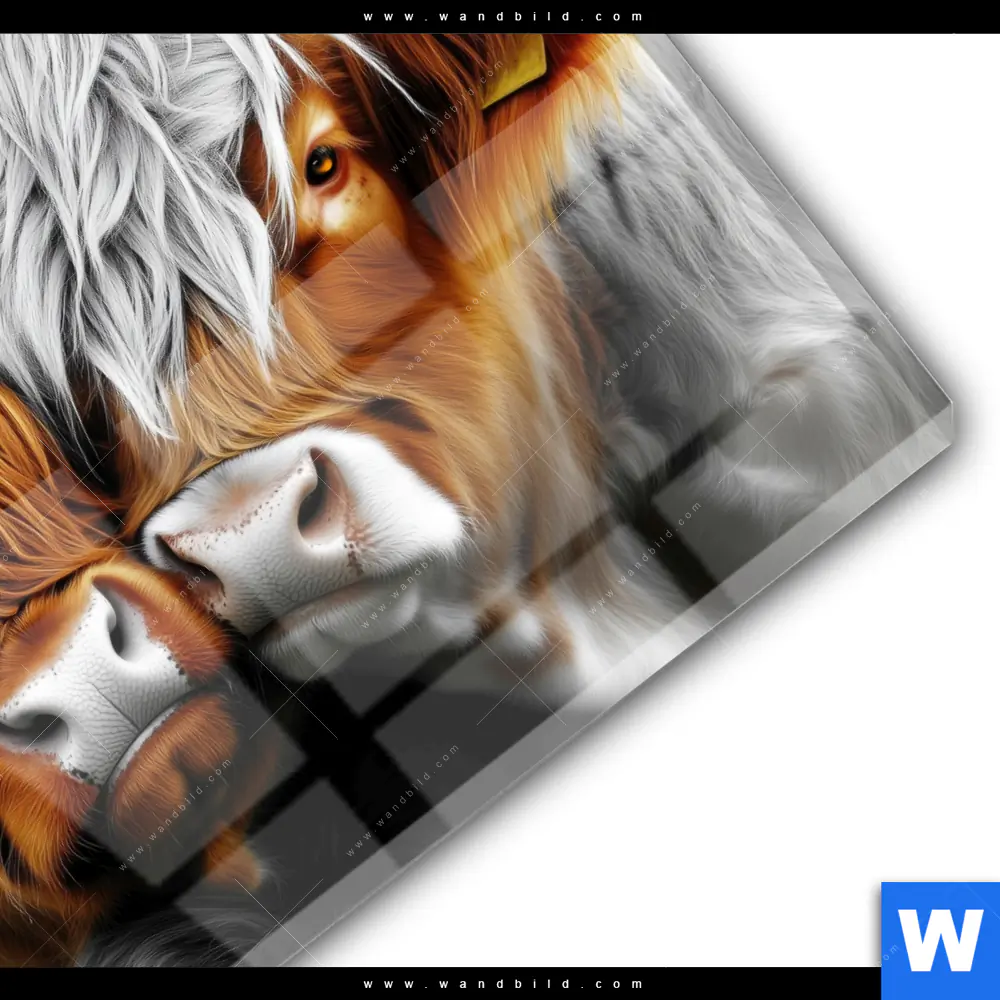 Acrylglasbild | Hochlandrinder - Harmonie der Natur | Quadrat