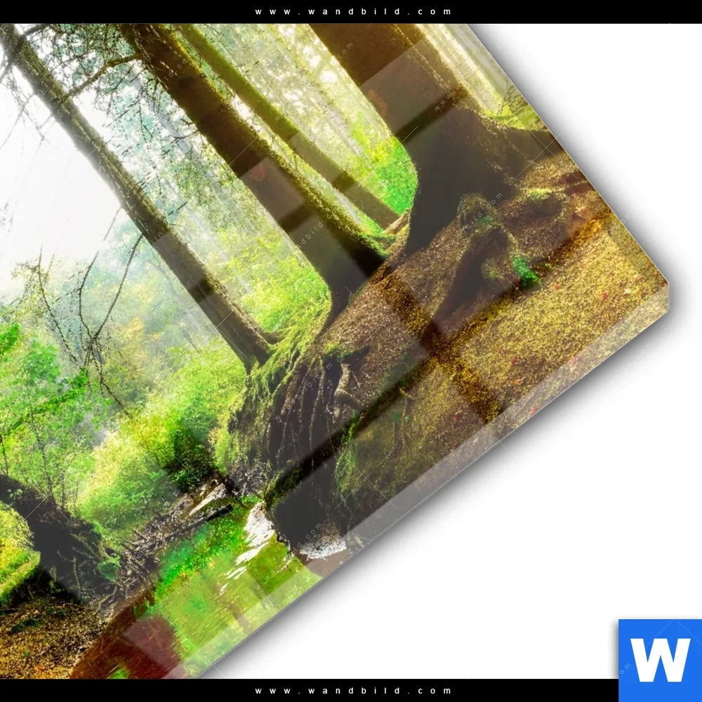 Landschaften, Wald - Bäume Glasbild inkl. vormontiertem Rückrahmen
