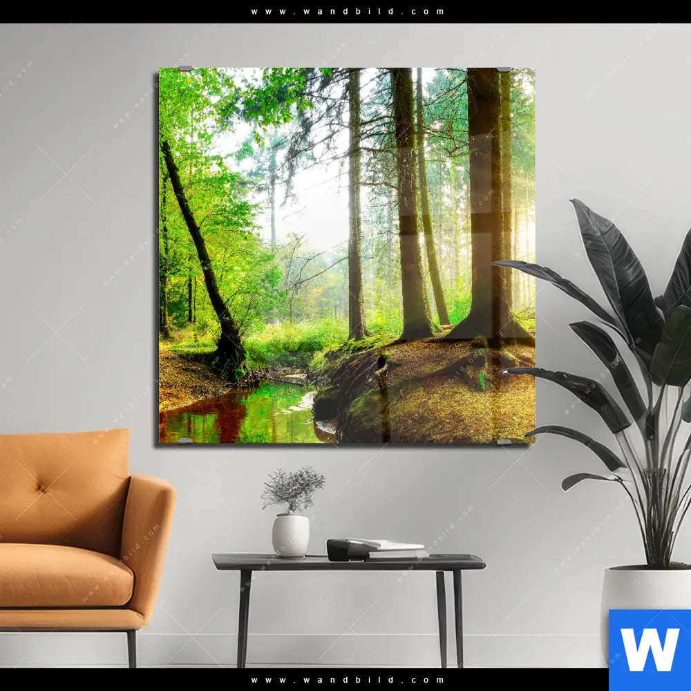 Acrylglasbild | Idyllischer Wald bei Sonnenaufgang | Quadrat