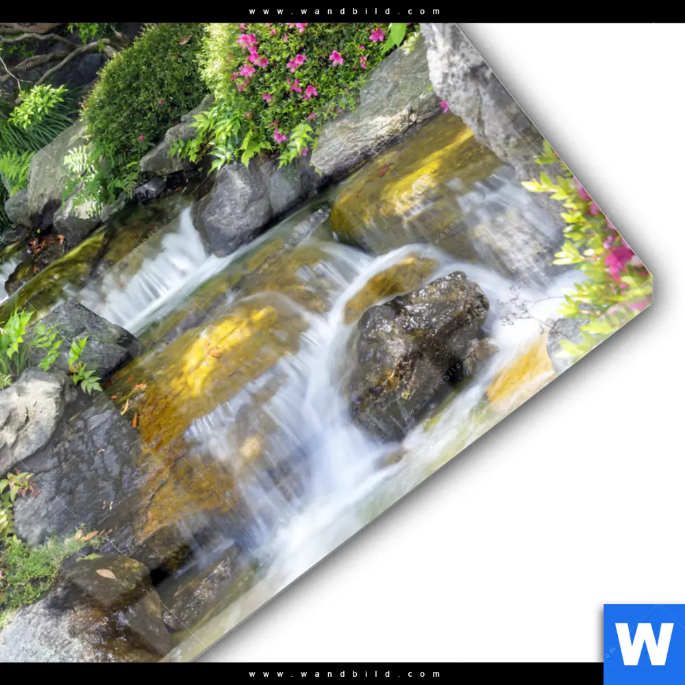 Acrylglasbild | Japanischer Garten mit Wasserlauf | Quadrat