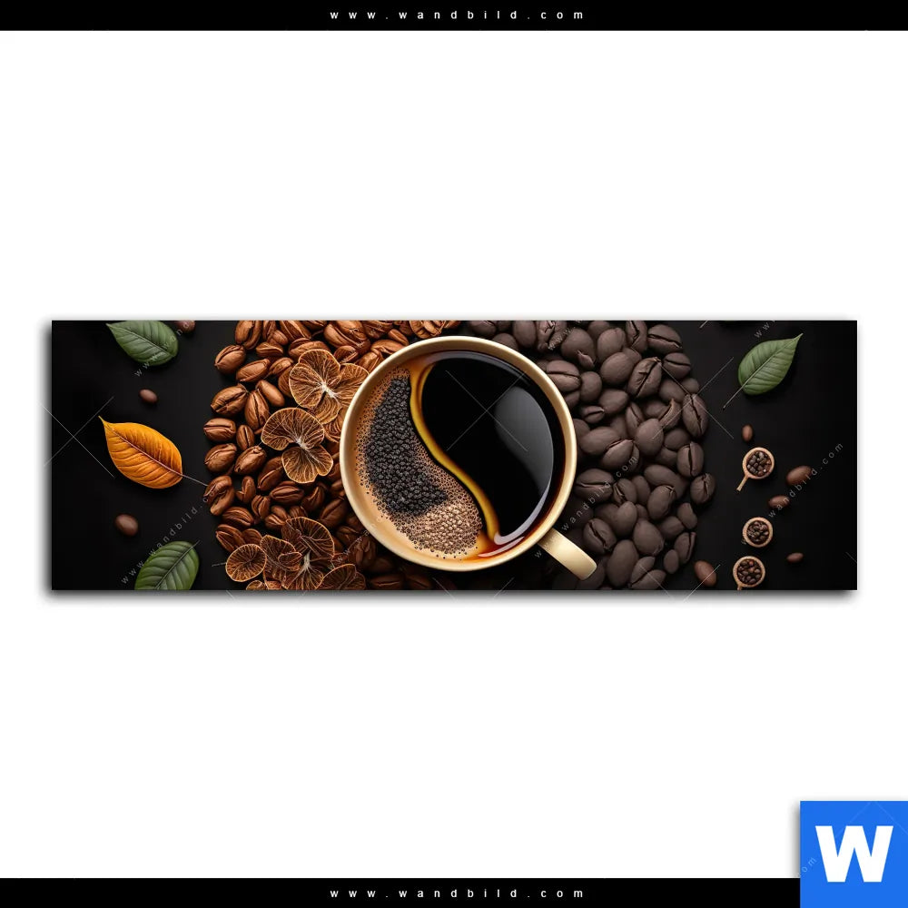 Acrylglasbild | Kaffee mit Blattdekoration | Panorama
