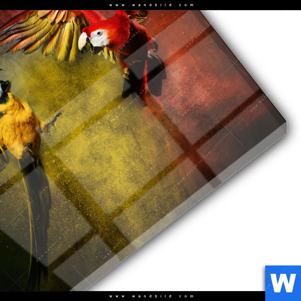 Acrylglasbild | Kampf der Papageien | Rund