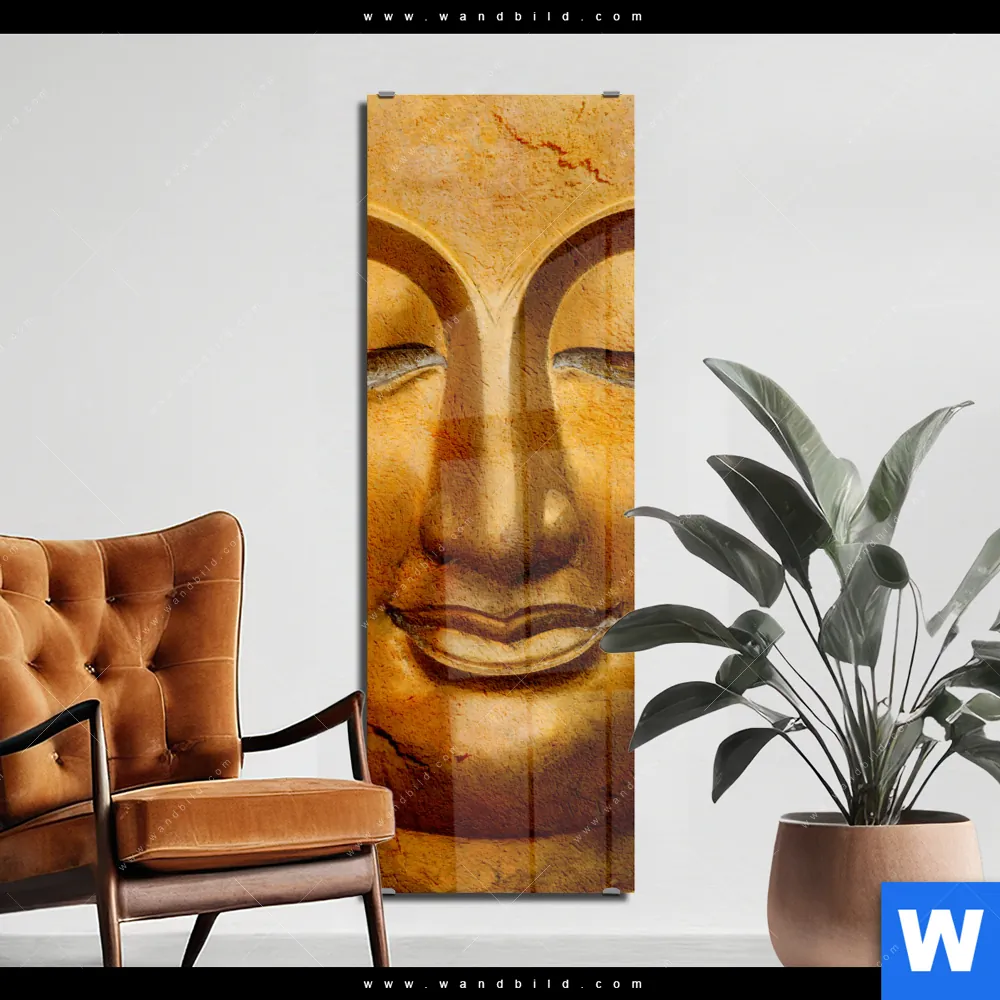 Acrylglasbild | Lächelnder Buddha in Gold | Schmal