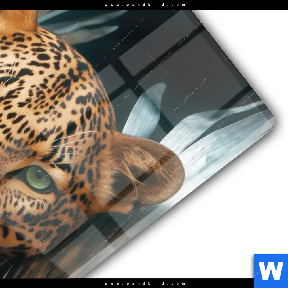 Acrylglasbild | Leopard zwischen Blättern | Hochformat