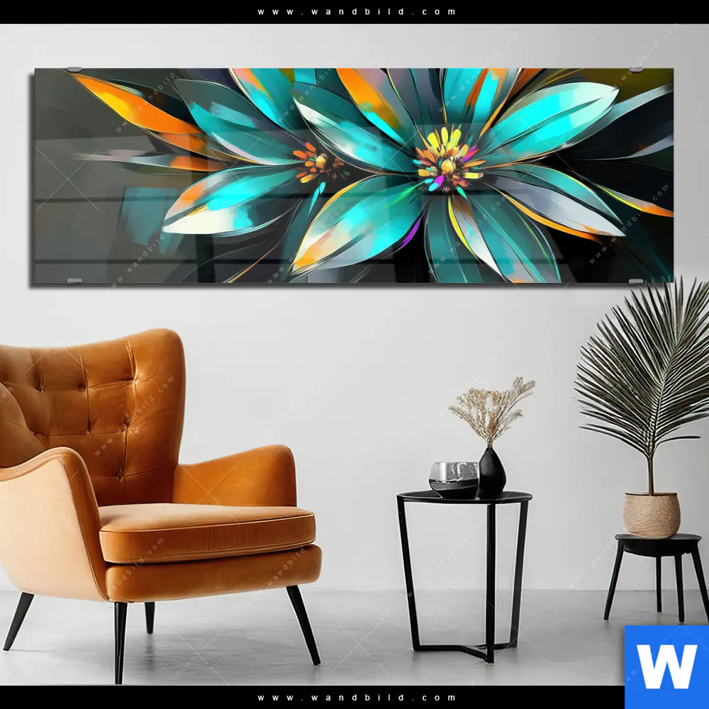 Acrylglasbild | Leuchtende Fantasieblüten | Panorama