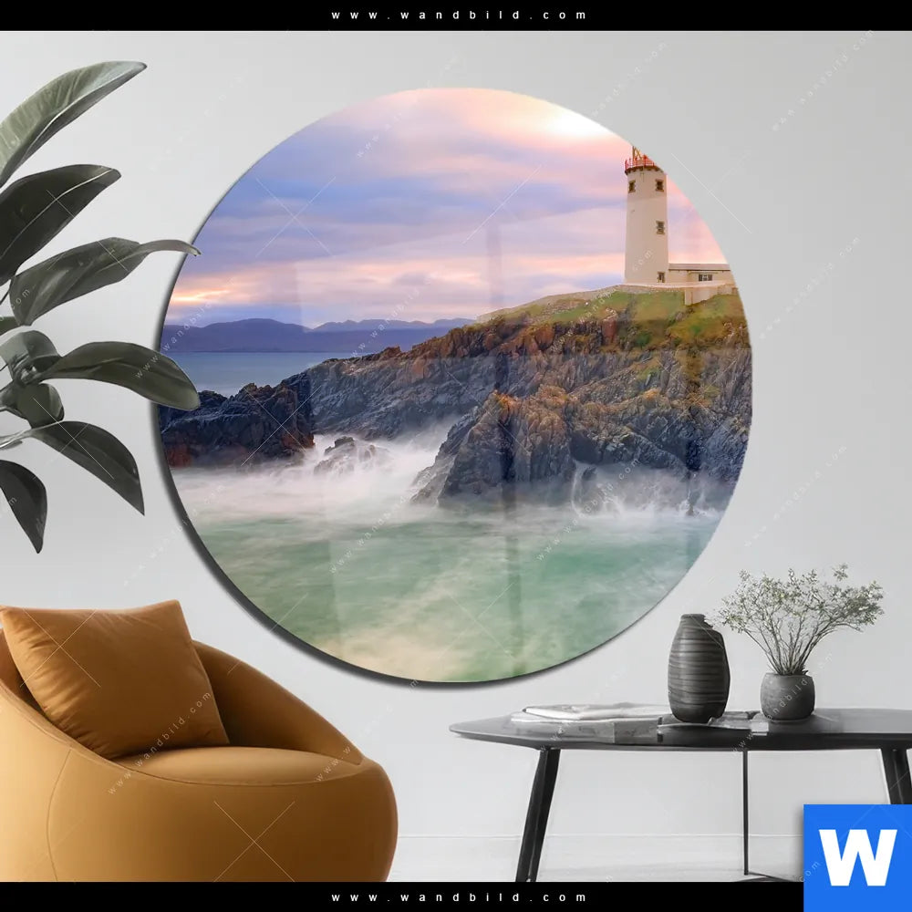 Acrylglasbild | Leuchtturm bei stürmischer See | Rund