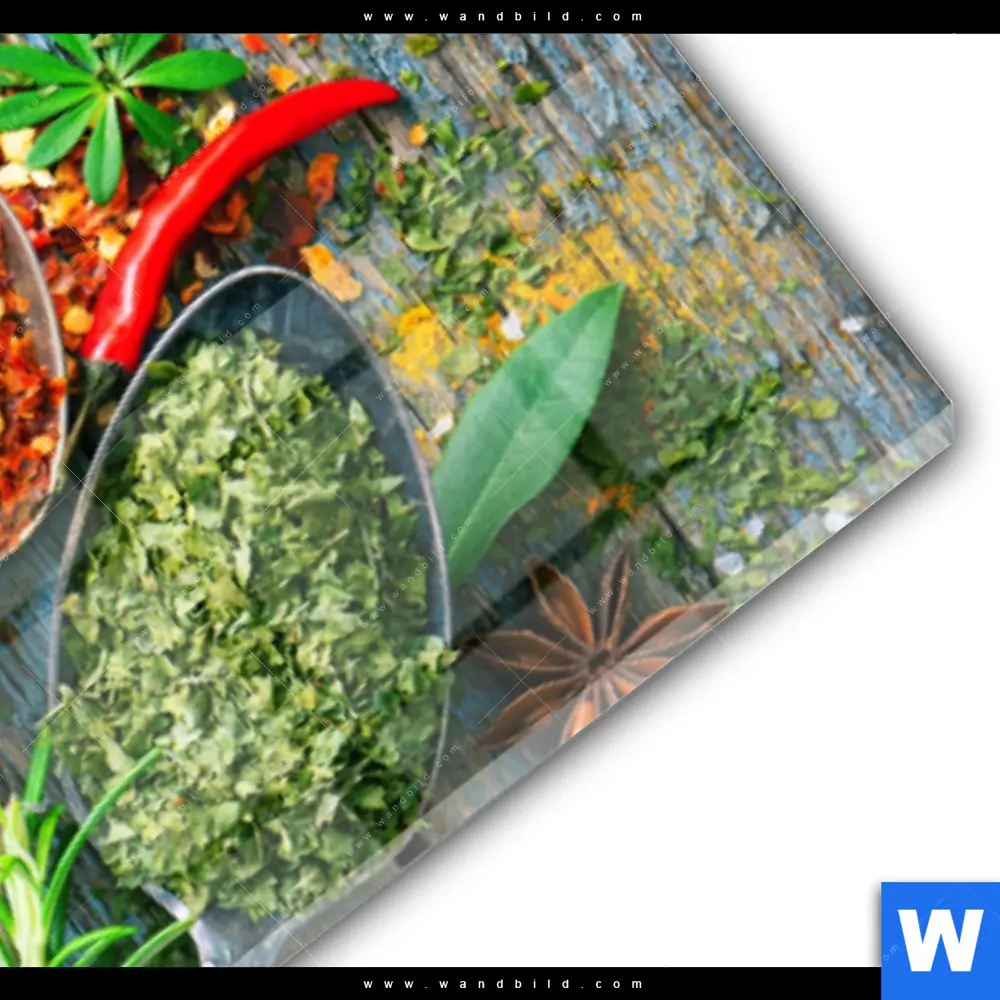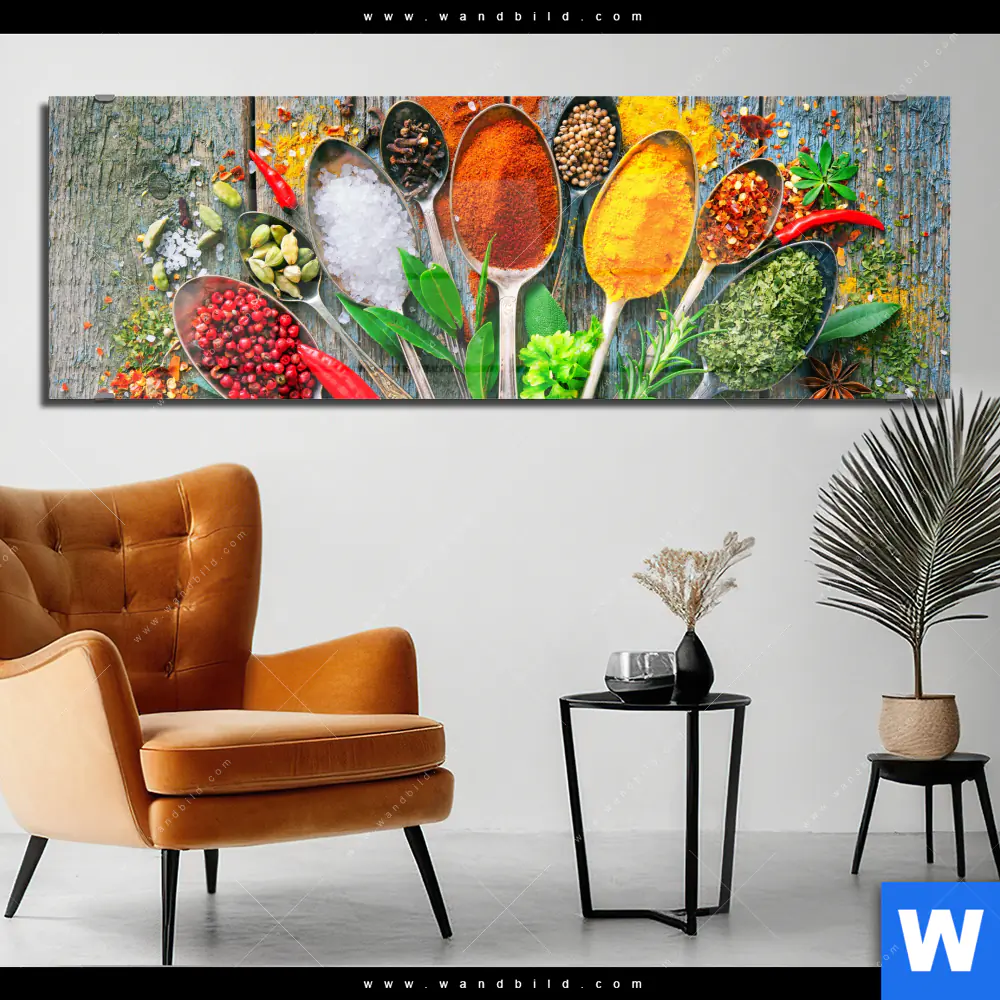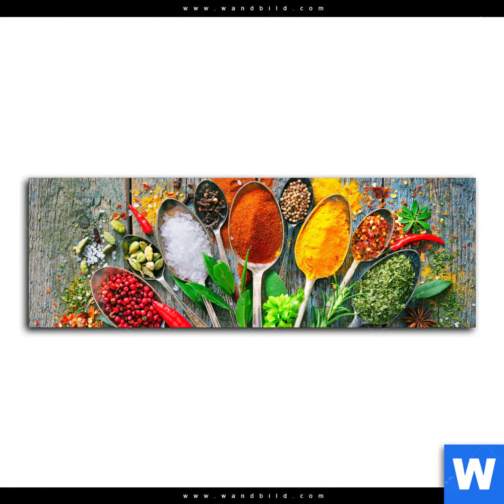 Acrylglasbild | Löffel mit Kräutern und Gewürzen | Panorama