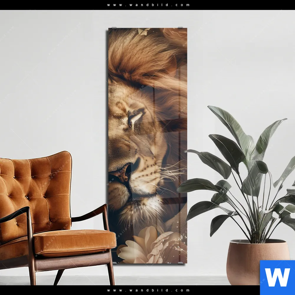 Acrylglasbild | Löwe schläft in Blüten | Schmal