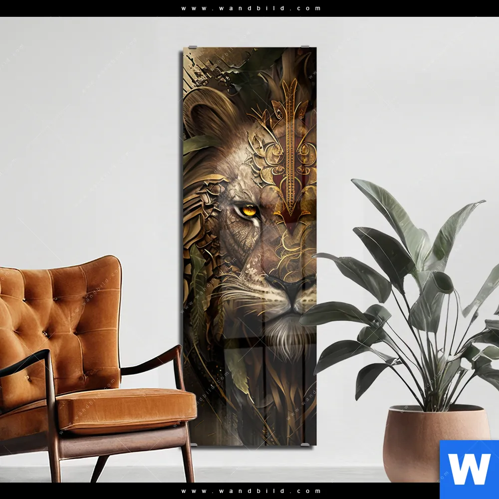 Acrylglasbild | Löwenkopf mit Krone | Schmal