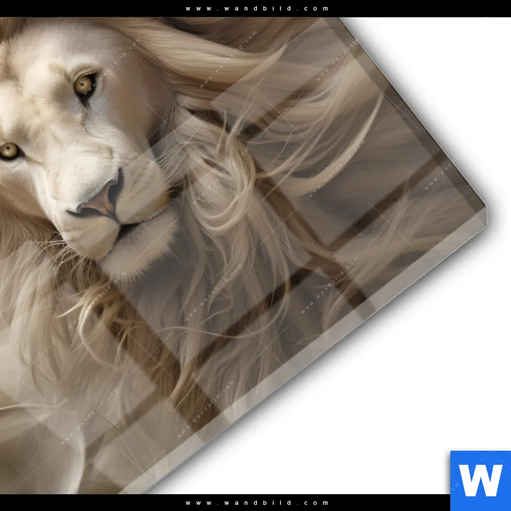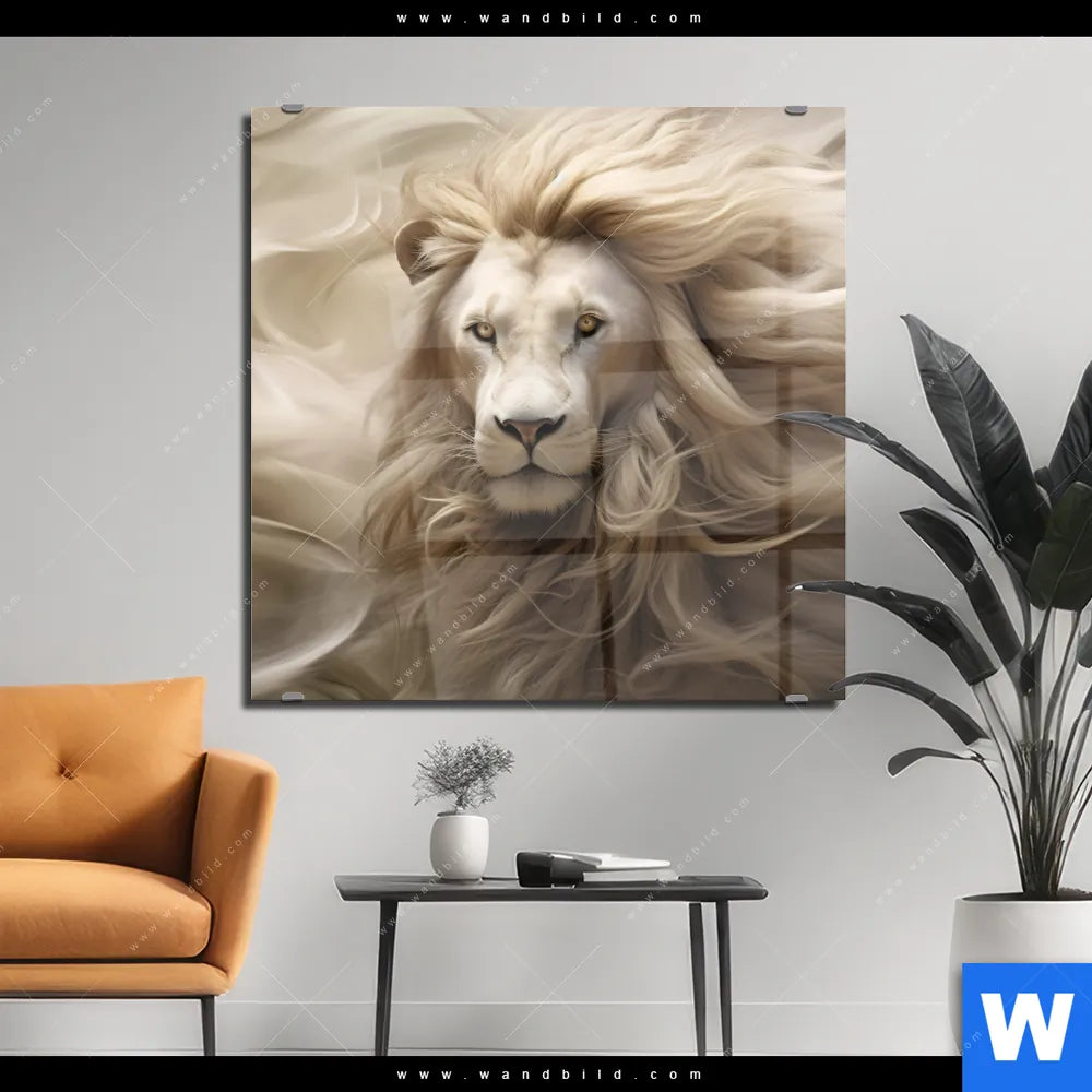 Acrylglasbild | Löwenkopf mit weißer Mähne | Quadrat