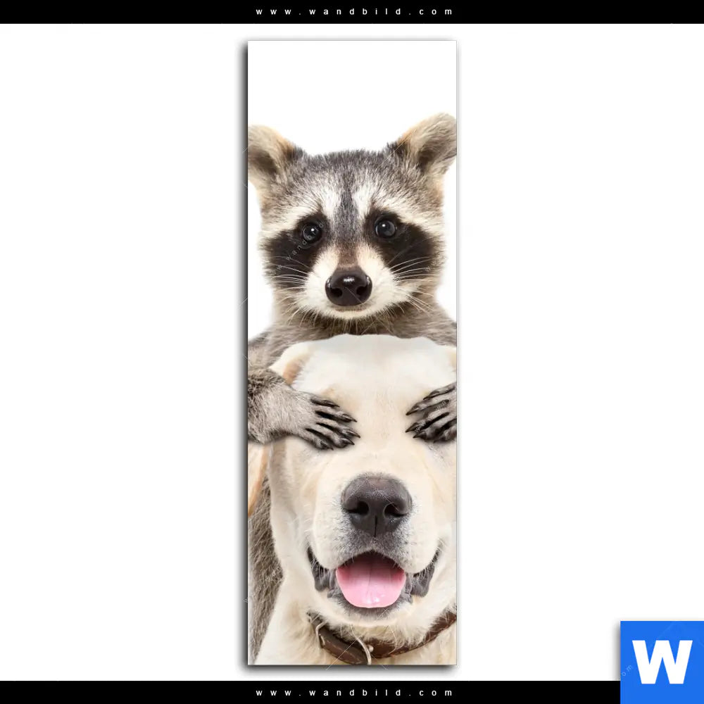 Acrylglasbild | Lustige Waschbären mit Hund | Schmal