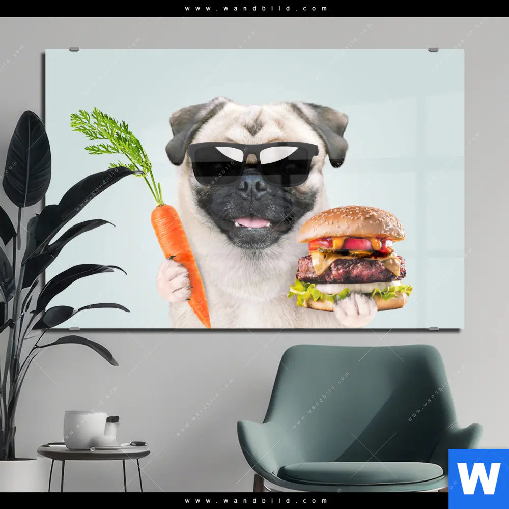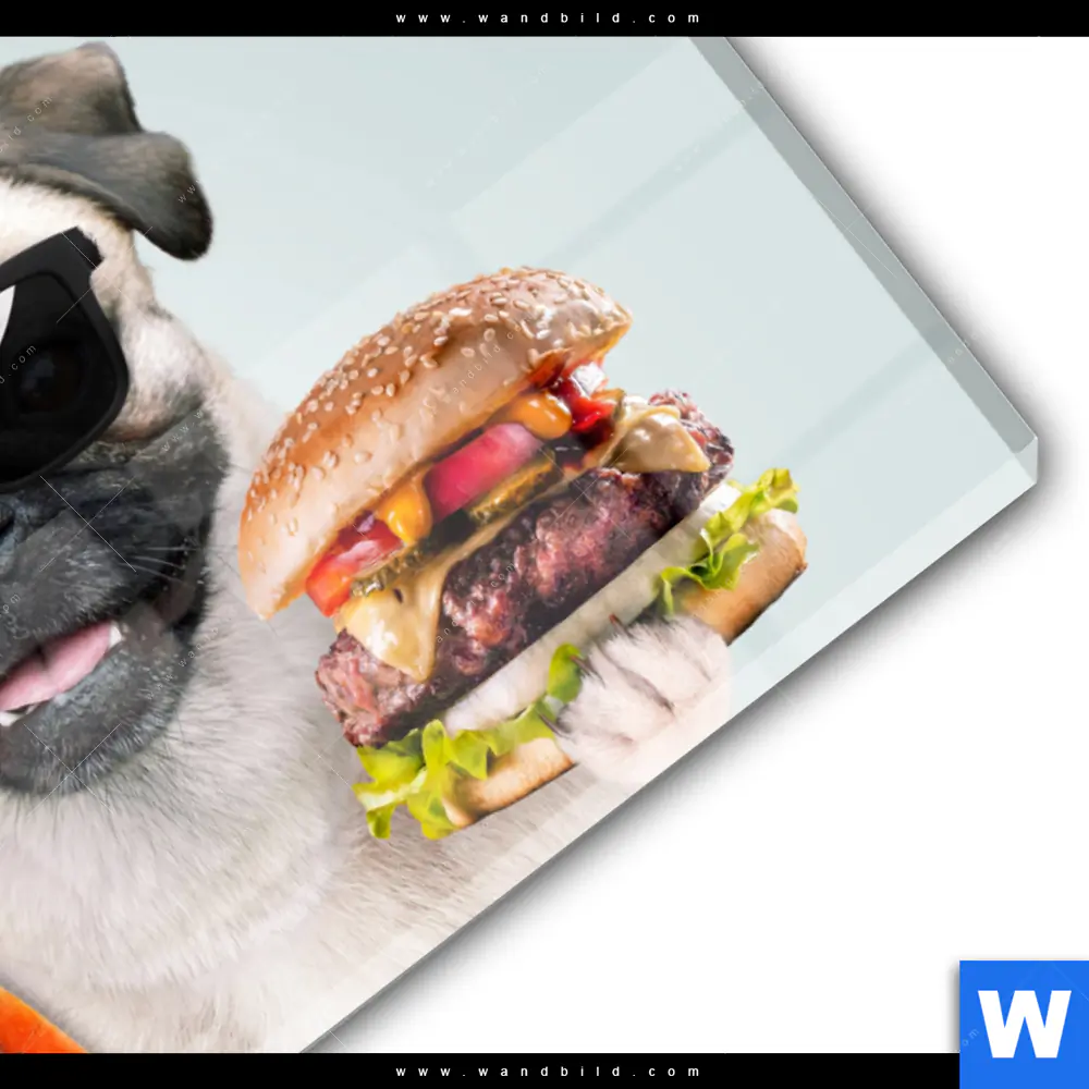 Acrylglasbild | Lustiger Hund mit Burger | Querformat