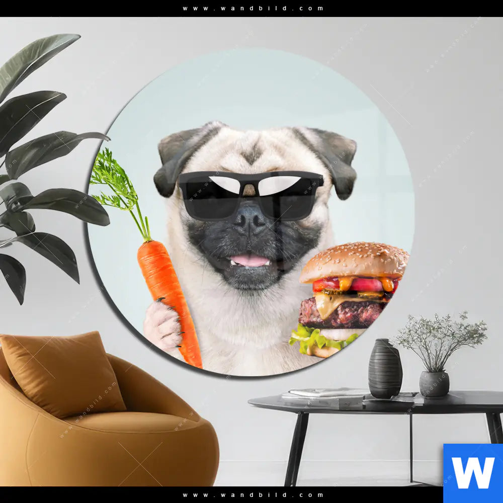 Acrylglasbild | Lustiger Hund mit Burger | Rund