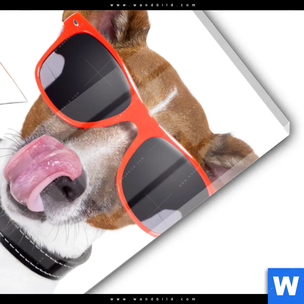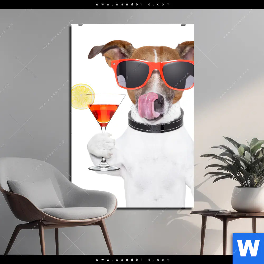 Acrylglasbild | Lustiger Hund mit Drink | Hochformat