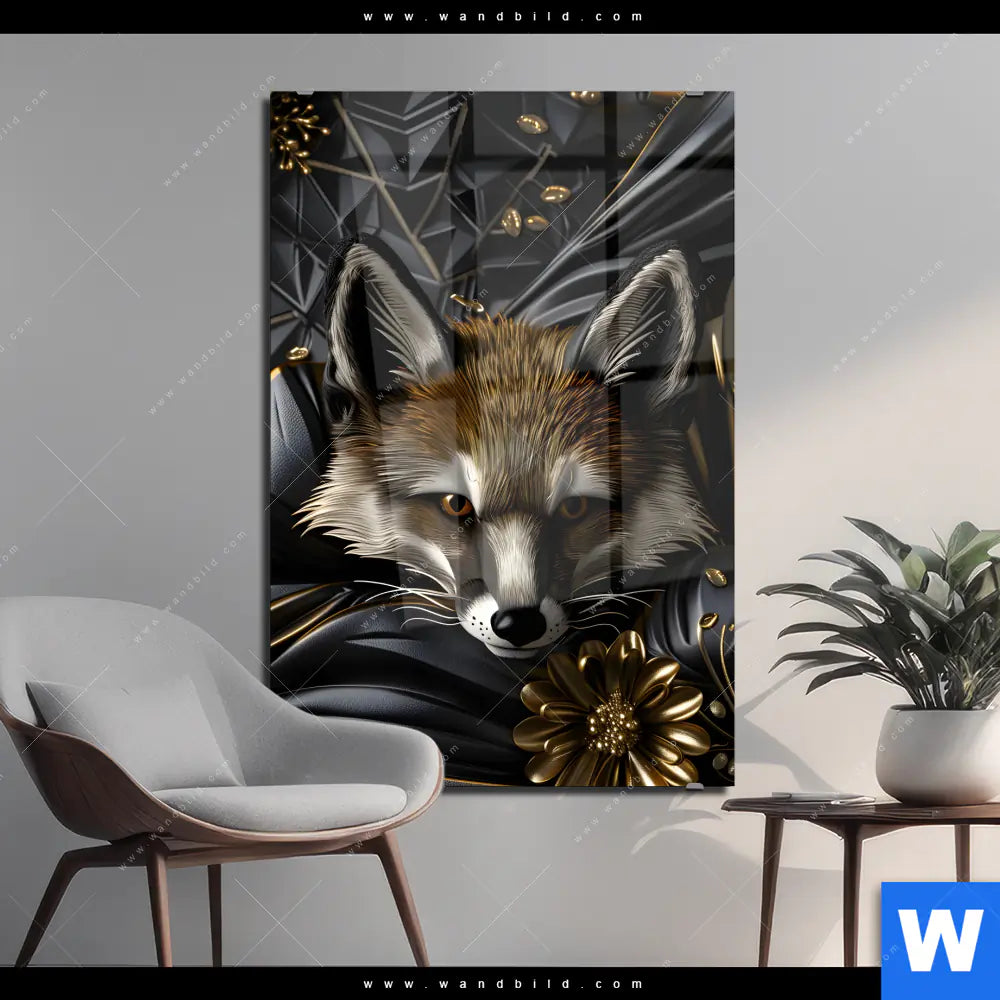 Acrylglasbild | Luxuriöser Fuchs mit Blumen | Hochformat