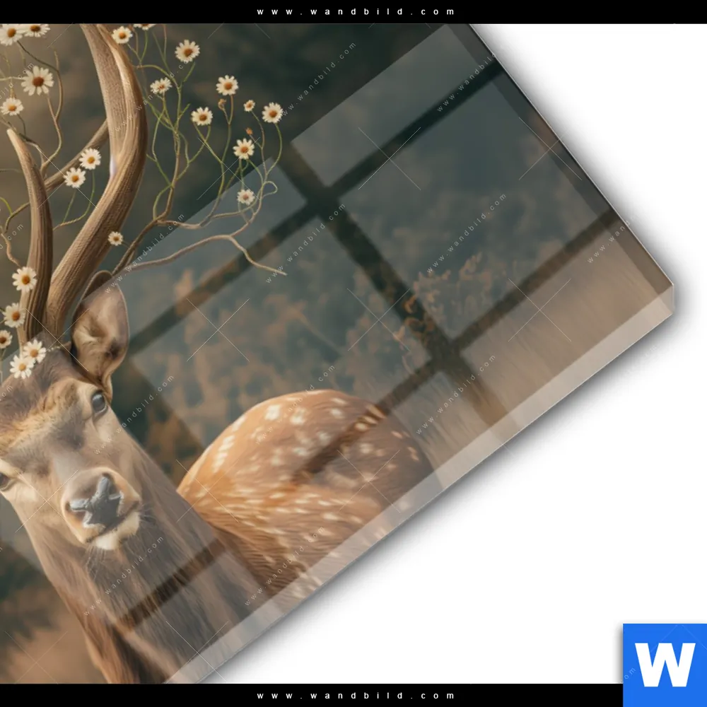 Acrylglasbild | Magischer Hirsch im Waldrand | Querformat