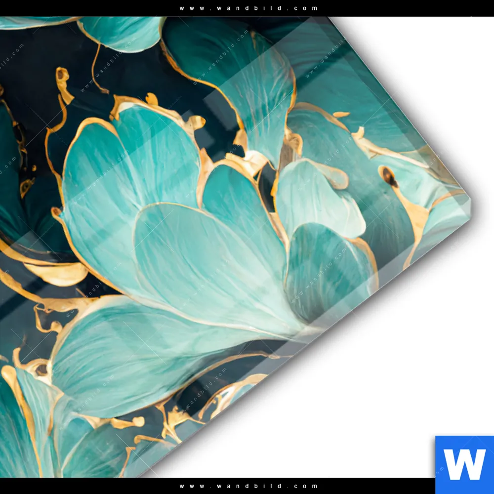 Acrylglasbild | Marmor Blüten in türkis & gold | Querformat