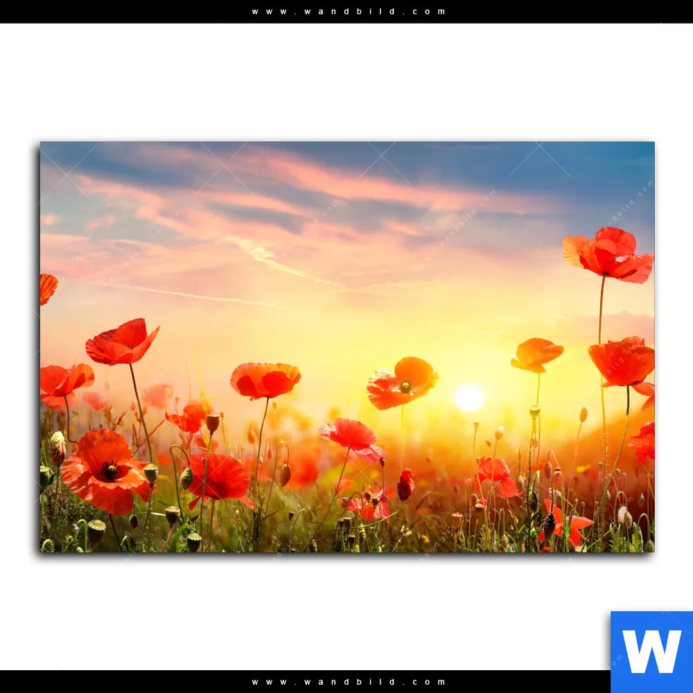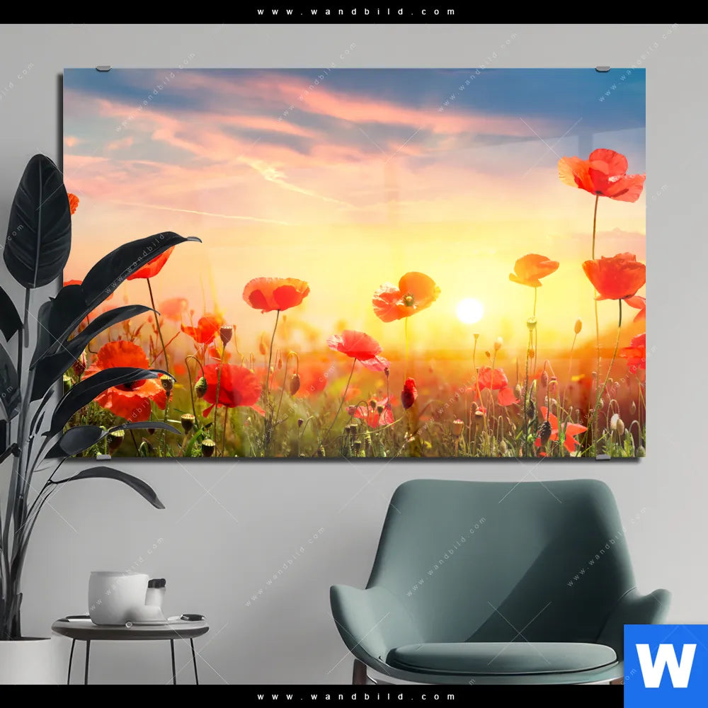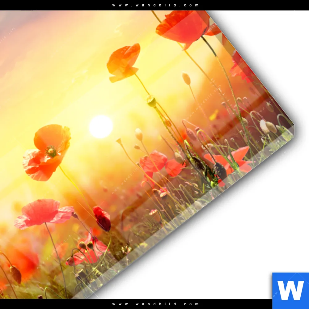 Acrylglasbild | Mohnblumenfeld bei Sonnenuntergang | Querformat