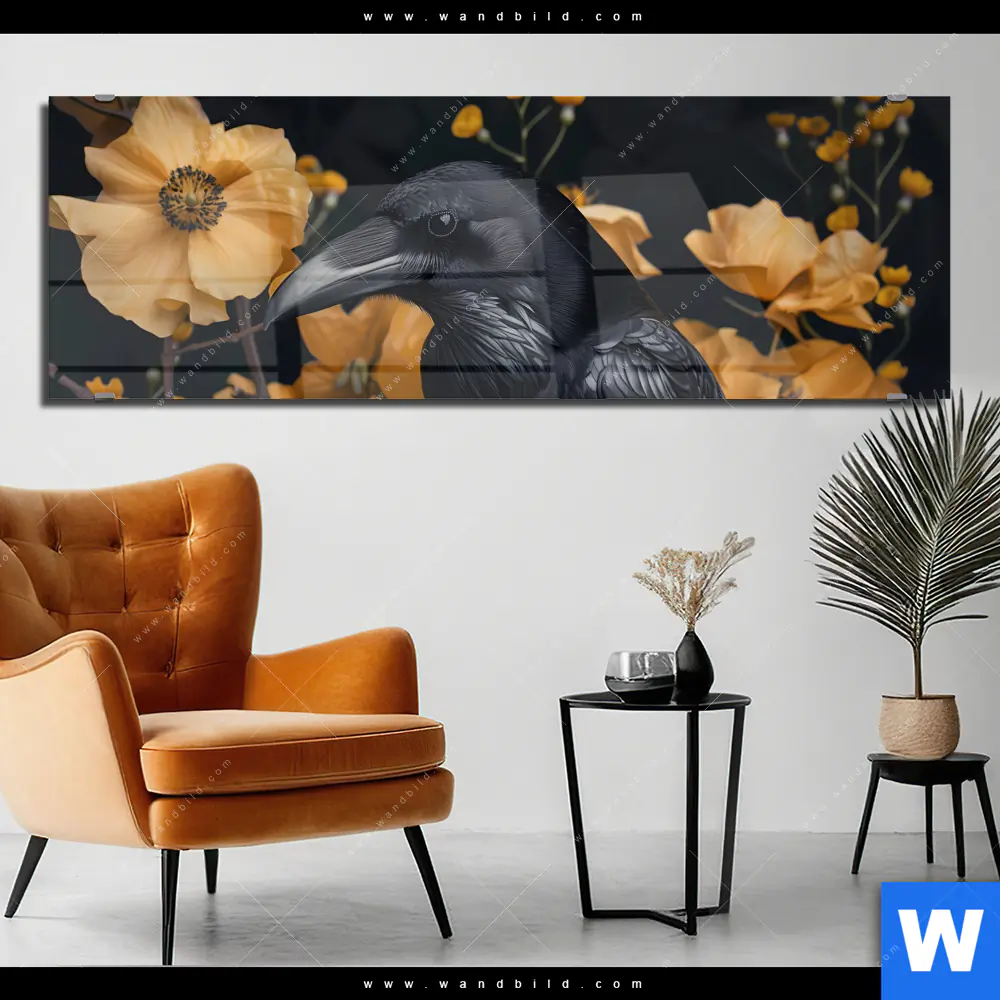 Acrylglasbild | Naturbild - Rabe & Blüten | Panorama