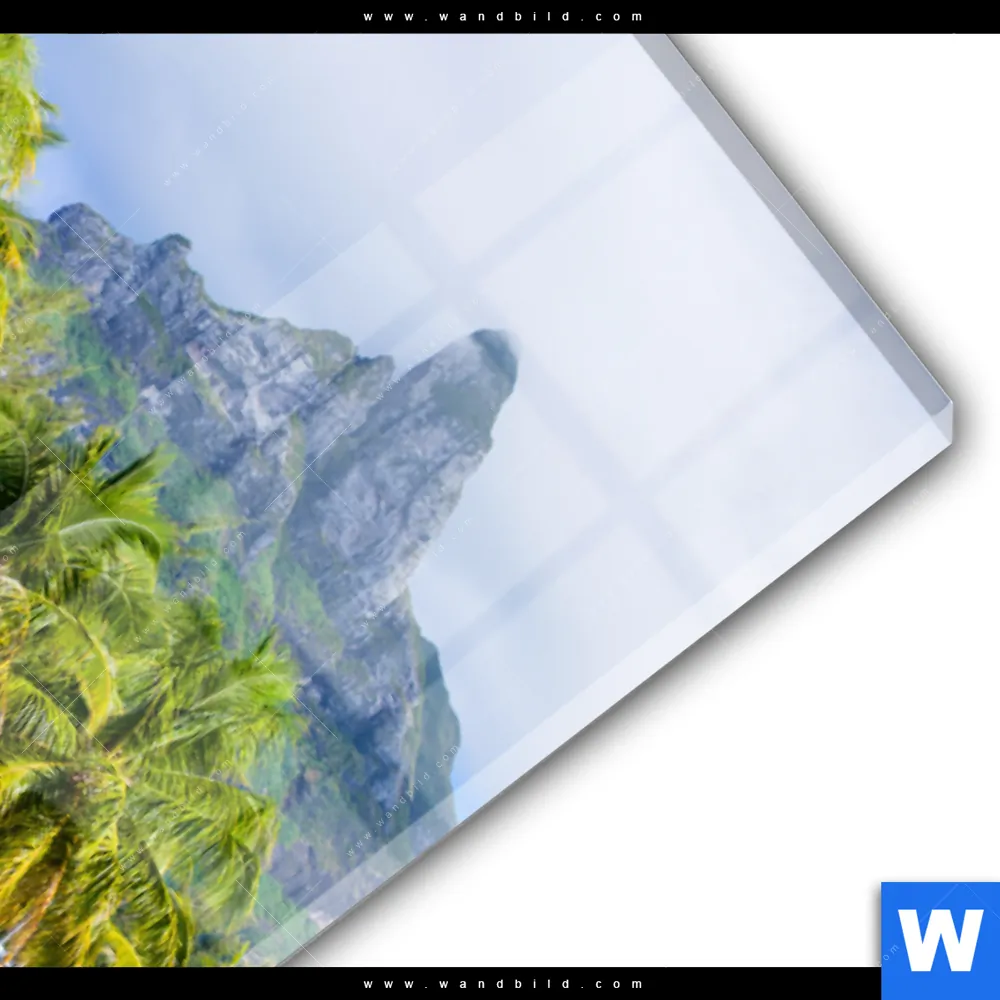Acrylglasbild | Palmen & Berg auf Insel | Hochformat