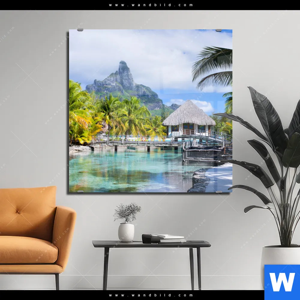 Acrylglasbild | Palmen & Berg auf Insel | Quadrat
