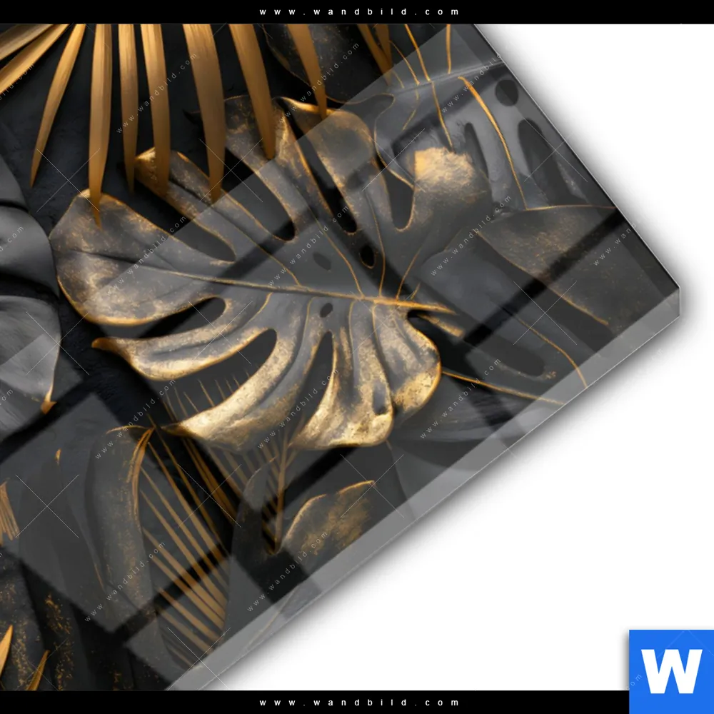 Acrylglasbild | Palmenblätter Schwarz Gold | Hochformat