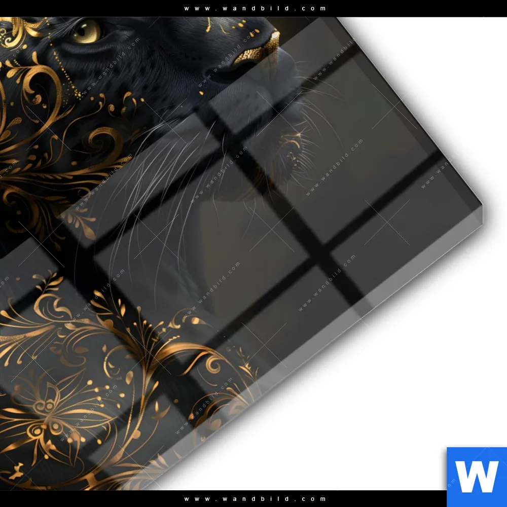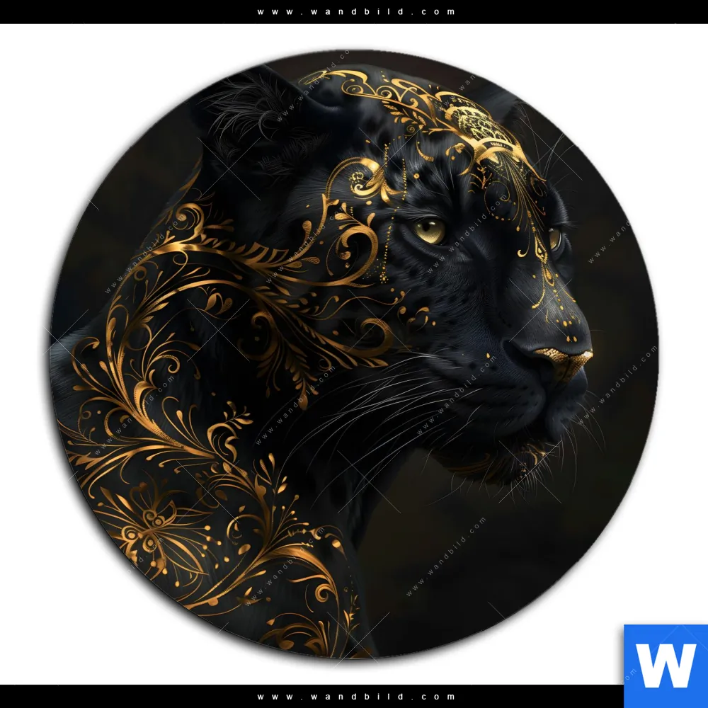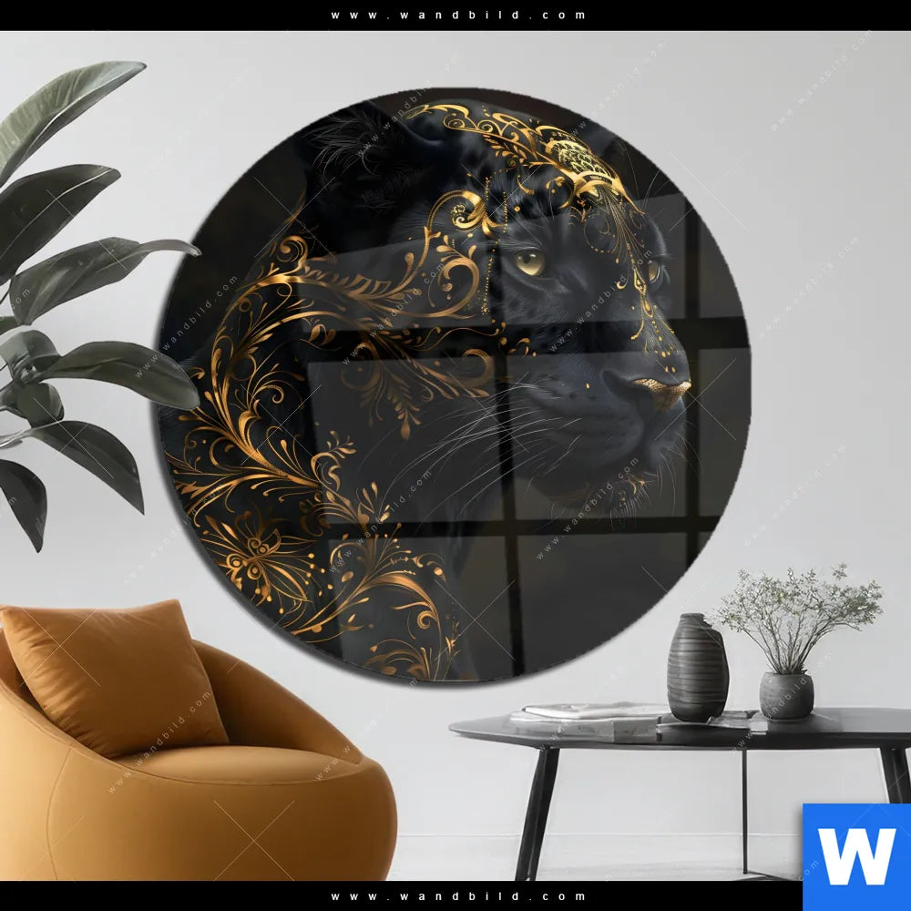 Acrylglasbild | Panther mit goldenen Ornamenten | Rund