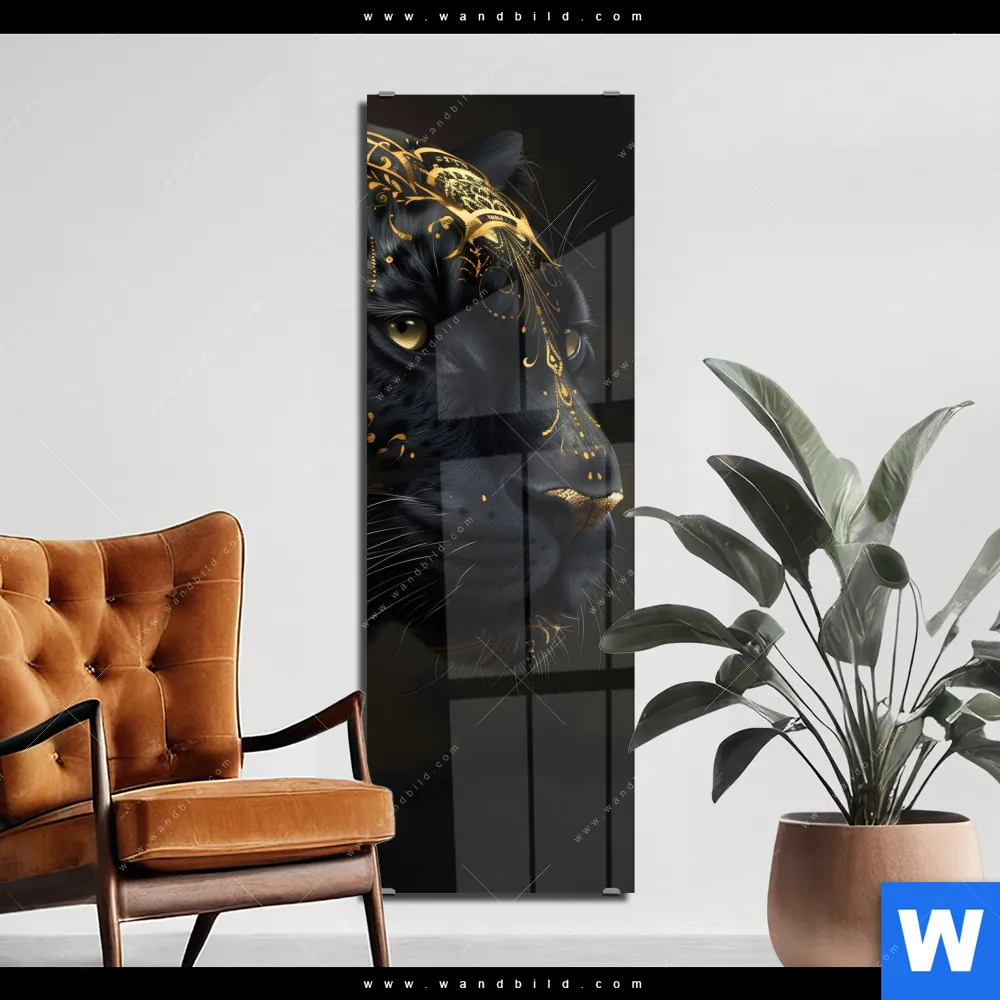 Acrylglasbild | Panther mit goldenen Ornamenten | Schmal