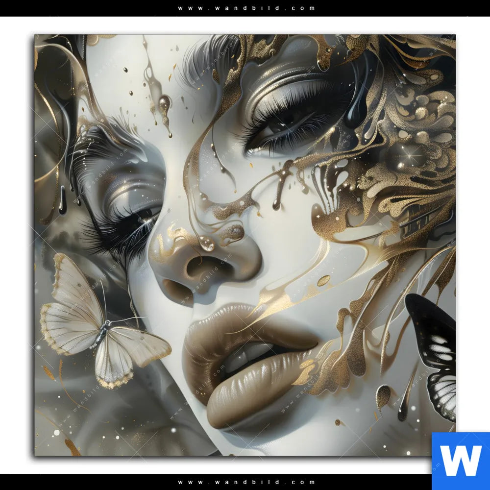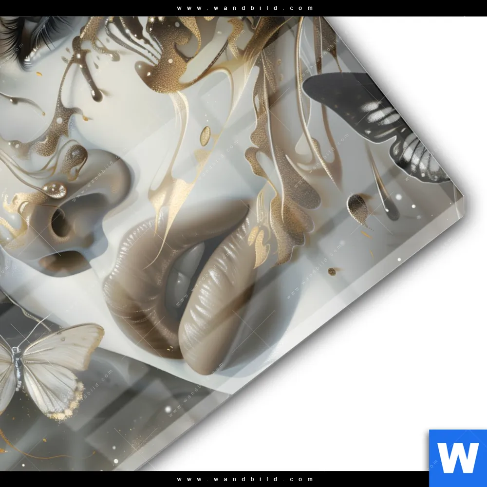 Acrylglasbild | Paola - Porträt mit Schmetterlingen | Quadrat