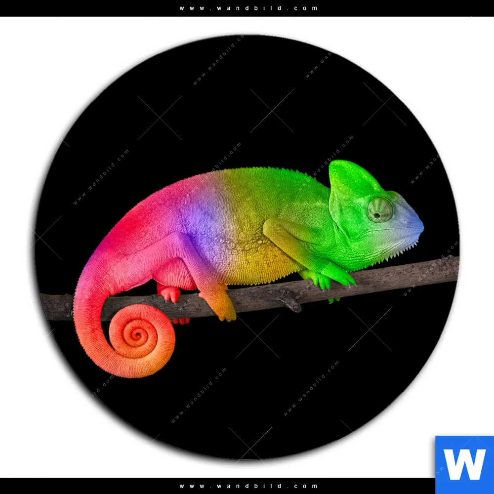Acrylglasbild | Regenbogen Chamäleon | Rund