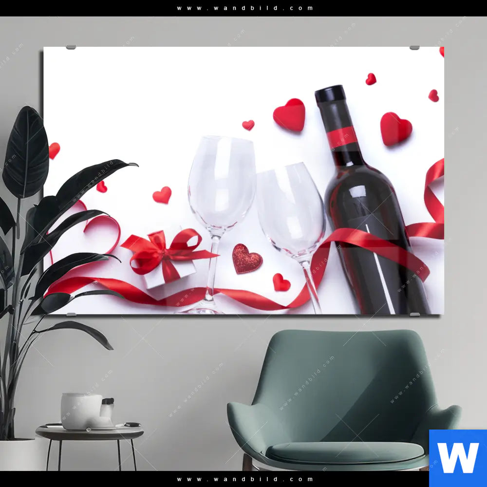 Acrylglasbild | Romantik mit Rotwein | Querformat