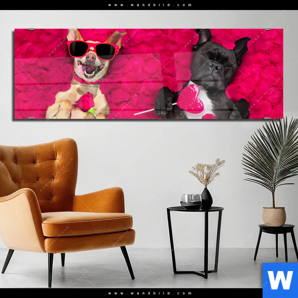 Acrylglasbild | Romantik mit süßen Hunden | Panorama