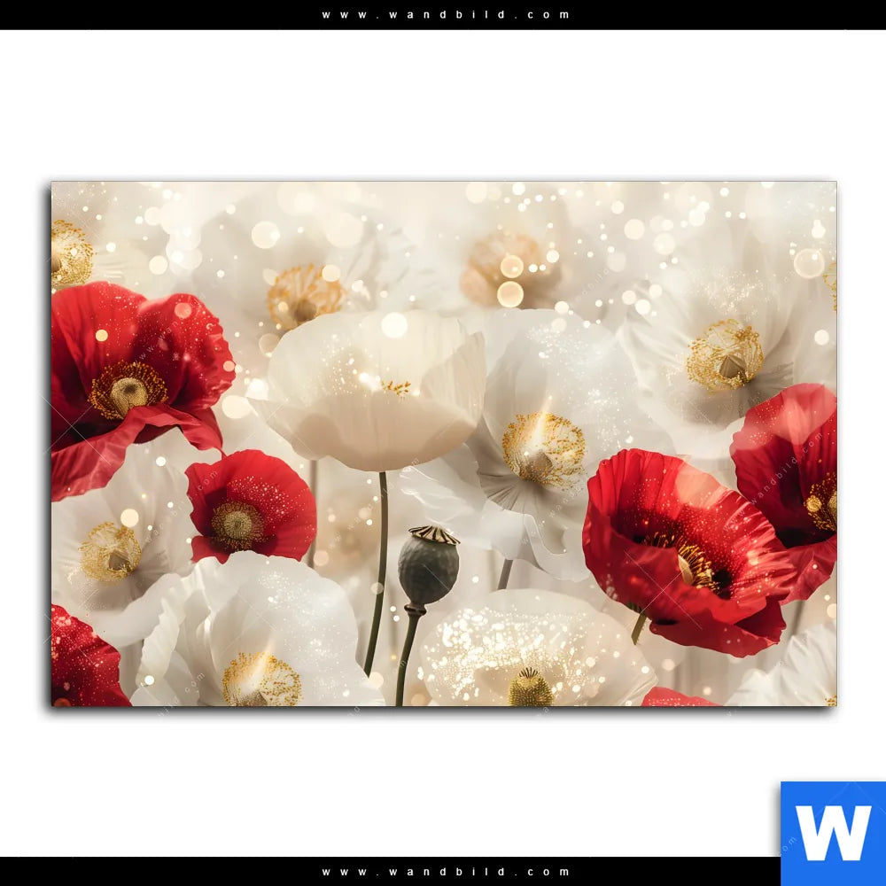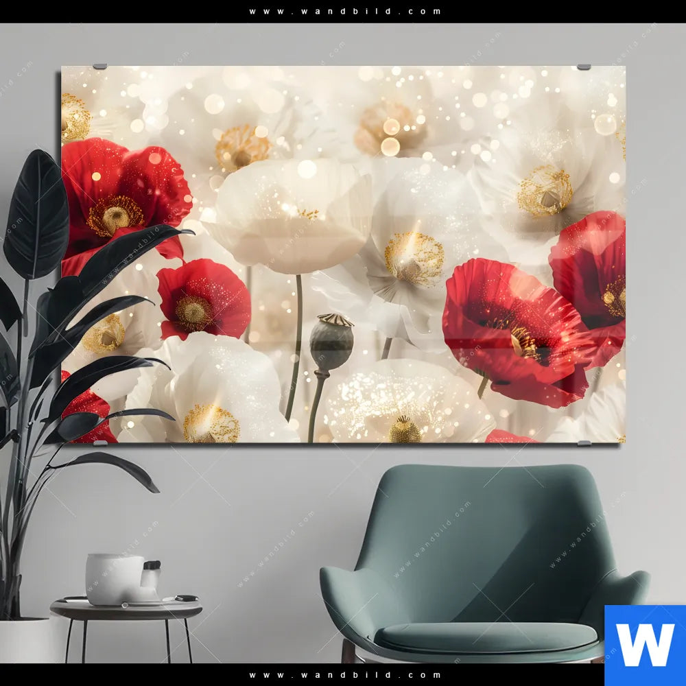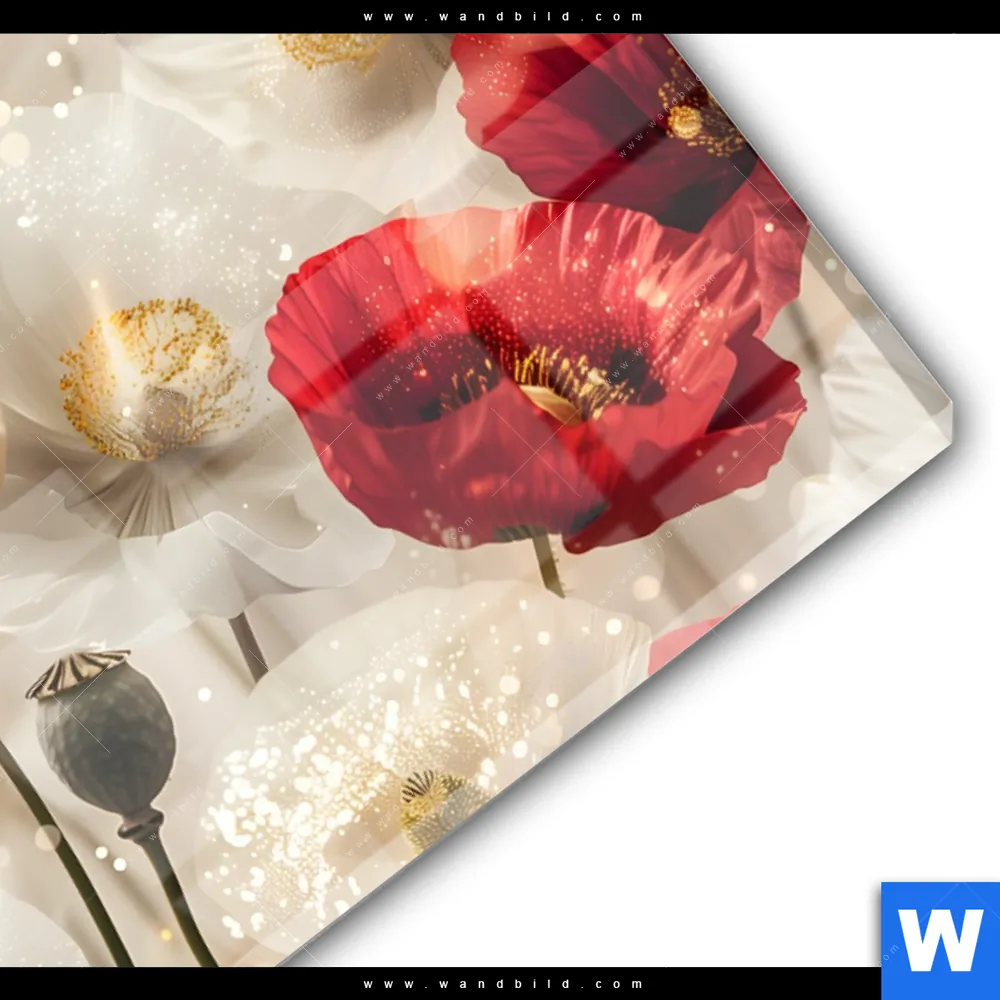 Acrylglasbild | Rote und weiße Mohnblumen | Querformat