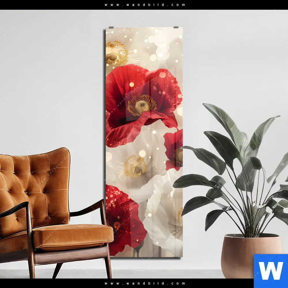 Acrylglasbild | Rote und weiße Mohnblumen | Schmal