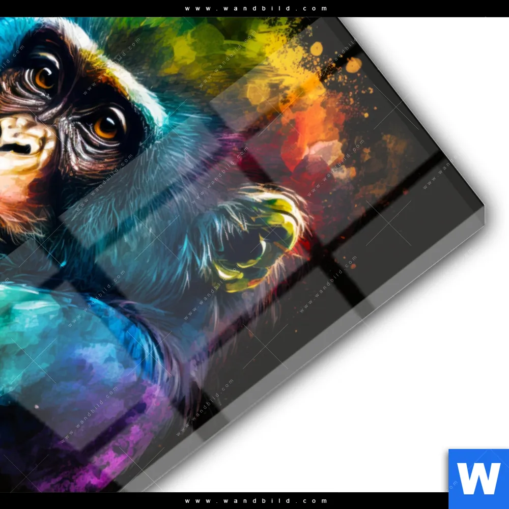Acrylglasbild | Schimpanse in bunten Farben | Hochformat