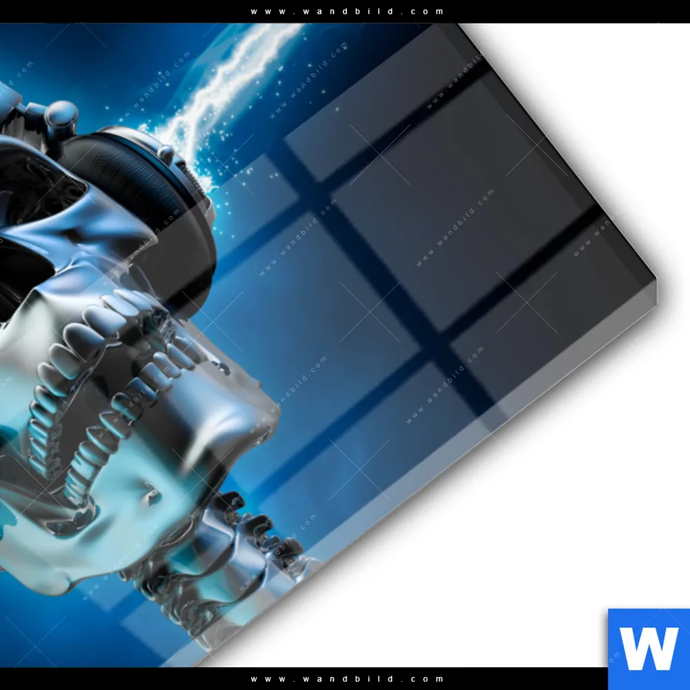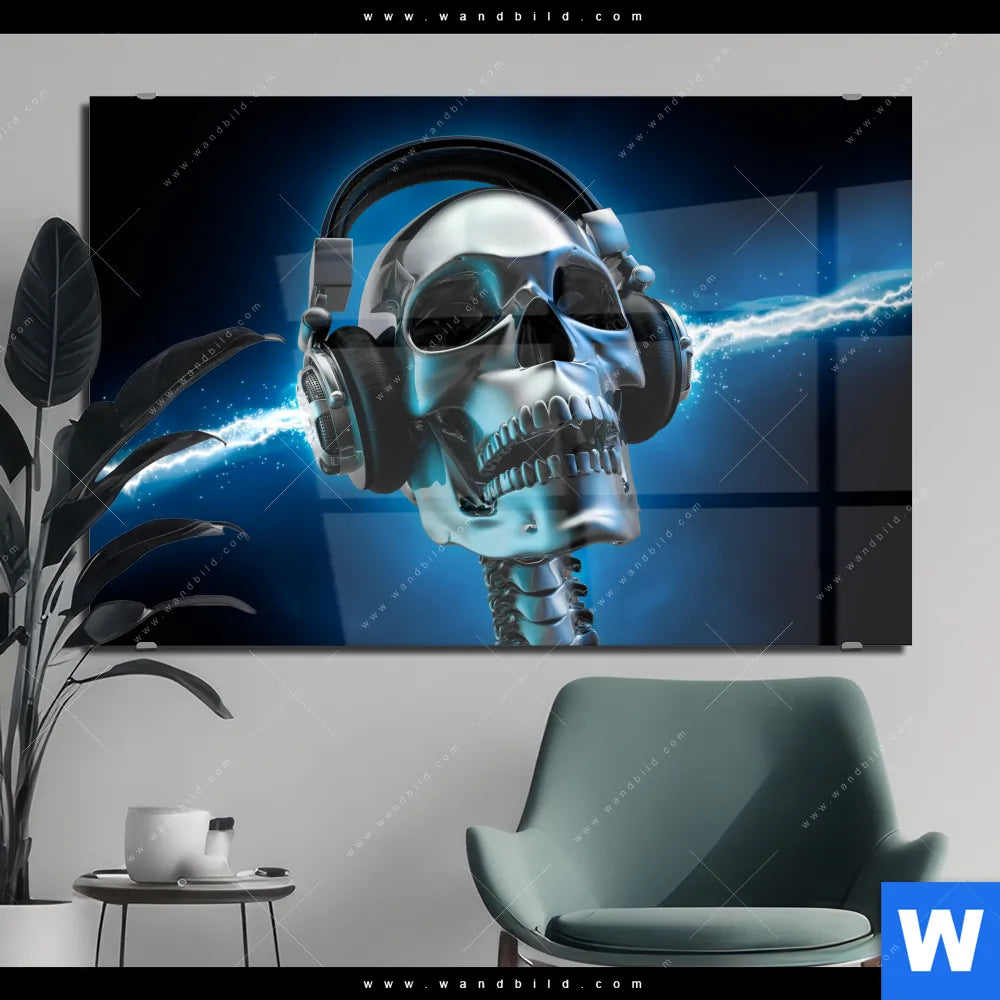 Acrylglasbild | Skelett & Kopfhörer | Querformat