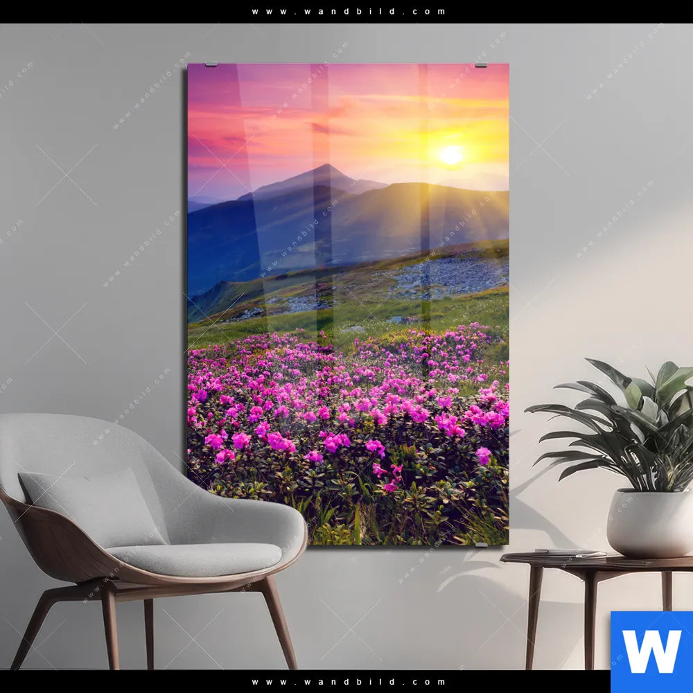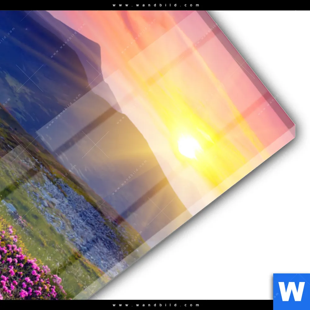Acrylglasbild | Sommerberg im Sonnenuntergang | Hochformat