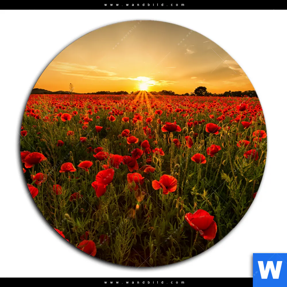 Acrylglasbild | Sommerlandschaft mit rotem Mohn | Rund
